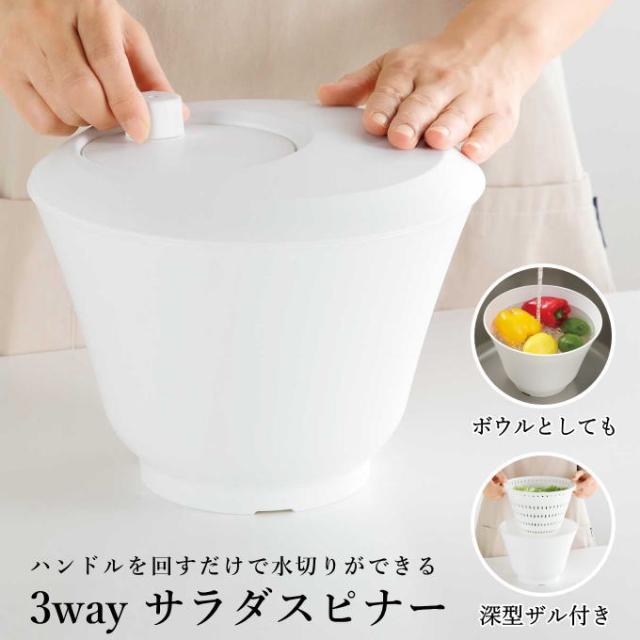| ハンドルを回すだけで水切りができる 3WAY SALAD SPINNER RICH RICH SALAD リッチリッチサラダ ハンドルを回して簡単に水切り たっぷり食材が入る深型ザル付き ボウルとしても使える |