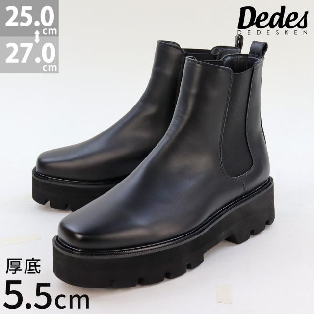 サイドゴアブーツ カジュアルシューズ メンズ 厚底 5.5cmヒール 履きやすい 歩きやすい ショート スクエアトゥ 合皮 黒 No.6371 25cm-27cm デデス