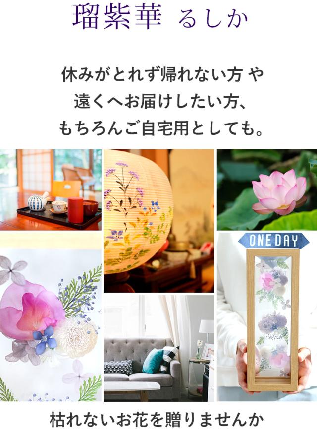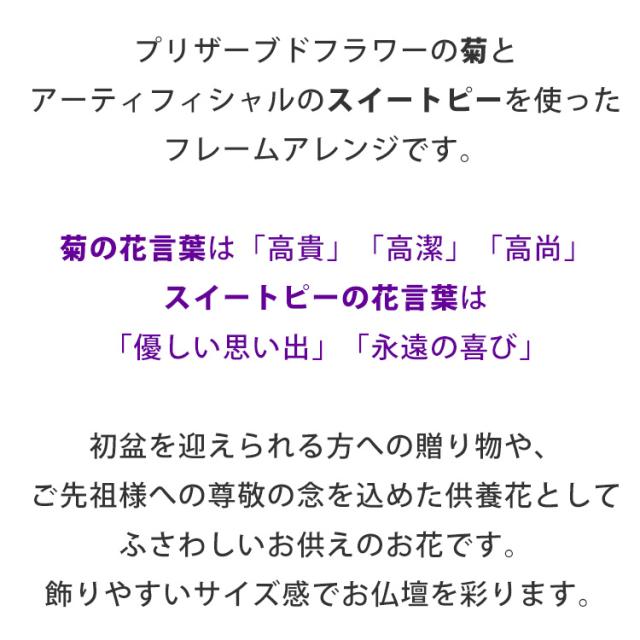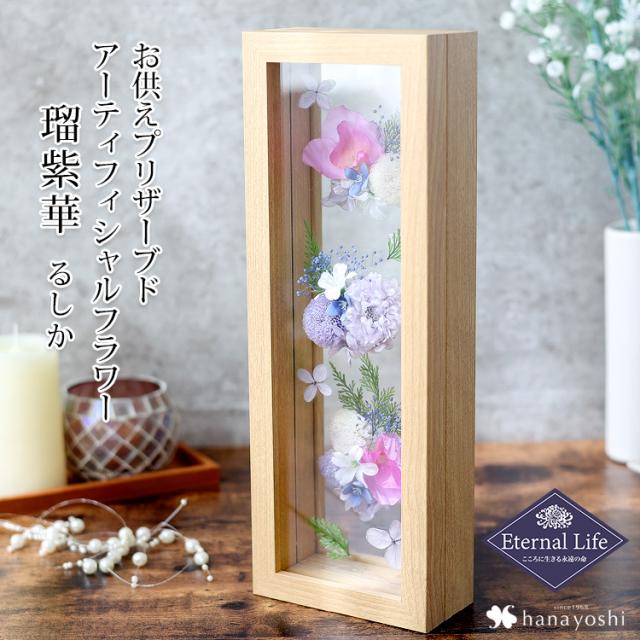 お供え プリザーブドフラワー&アーティフィシャルフラワー フレーム 瑠紫華 るしか 仏花 仏壇用 お供え用アレンジメント お供え 喪中見舞い 喪中 お見舞い 喪中はがきが届いたら 年賀欠礼 年末