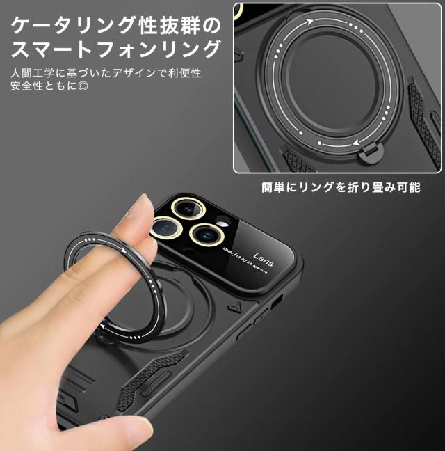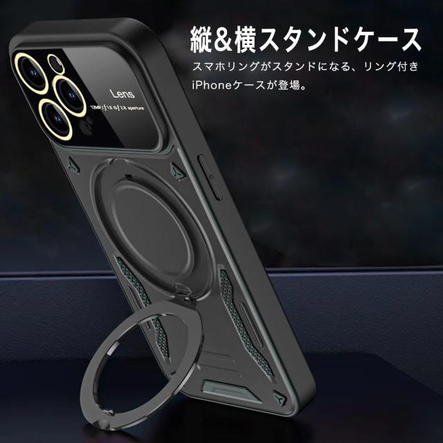 | 縦置きも横置きも可能!スタンド機能付きiPhoneスマホリングカバー スタンドとしても使用できるスマホリングが付いたiPhoneカバーにおしゃれなメタリックデザインが登場! デザイン性の高いカバーは、iPhoneのスタイリッシュさを損なわず、より際立ててくれます。 レンズ部分も9Hガラスで完全ガード、耐久性も安心で利便性と実用性を兼ね備えています。 またリングはメタル仕様になっておりMagSafe商品を吸着できアップル純正のワイヤレス充電器にもカバーを付けたまま充電をする事が出来ます。 ※スマホリング自体にマグネット機能は付いておりません。対応する機種はiPhone12、13、14、と最新シリーズ15の全モデルに対応しています。 |