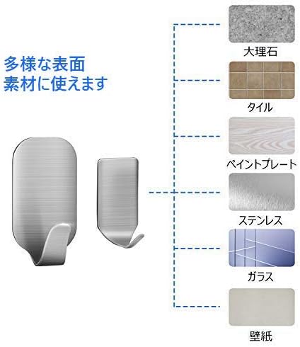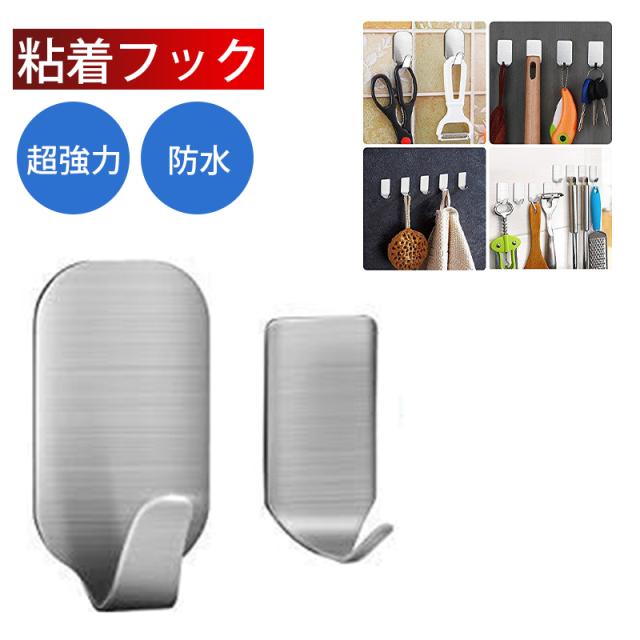 粘着フック フックステンレス 壁掛けフック 強力粘着フック 貼り付け跡なし 防水 耐荷重4KG キッチン お風呂場 洗面所用【16枚セット】