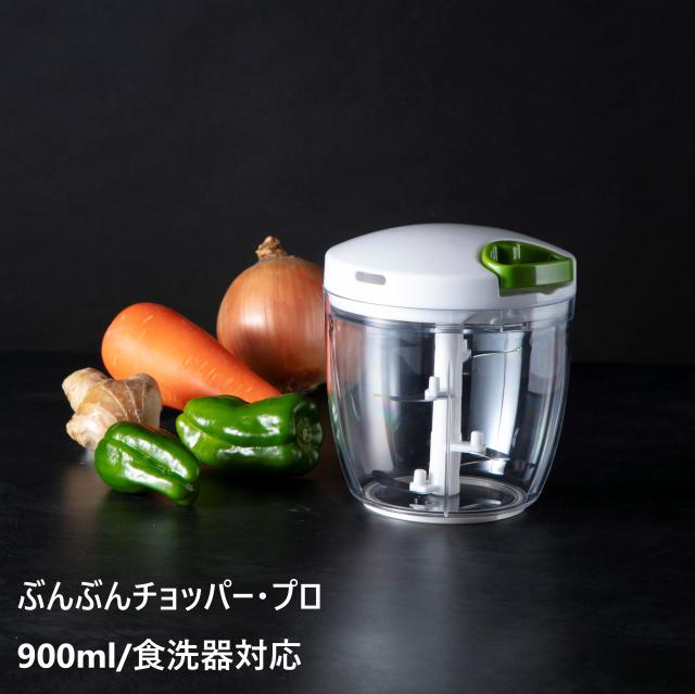 ぶんぶんチョッパー Pro 900ml 送料無料 みじん切り 食洗器対応 内蓋付き トライタン 電源不要 時短 混ぜ器パーツ キッチン 料理 下ごしらえ ハンバーグ