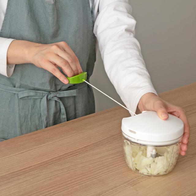持ち手を手前に引っ張るだけ。誰でもあっという間にみじん切り。