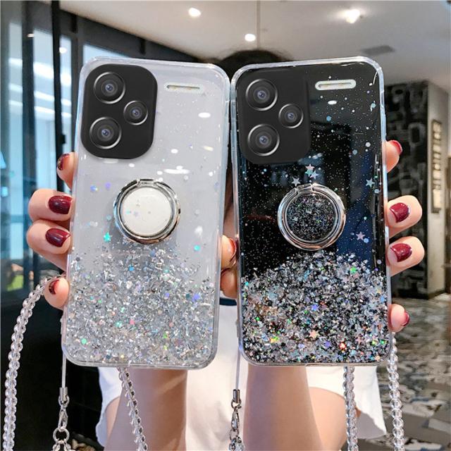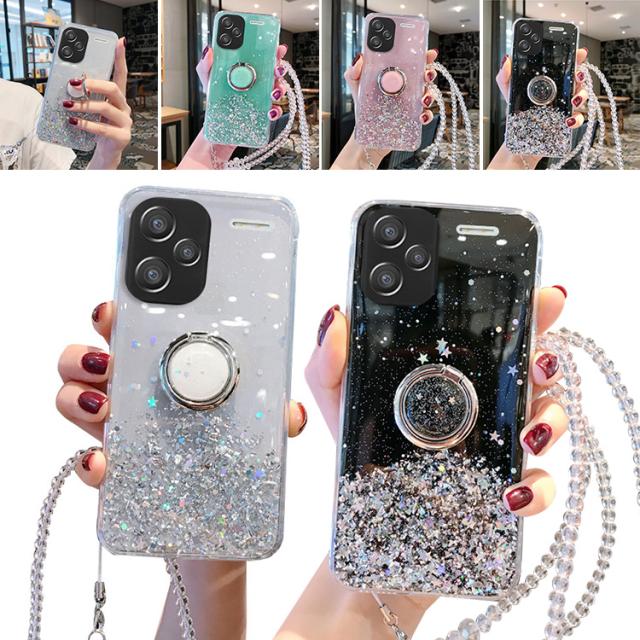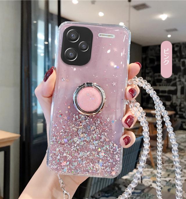 Redmi Note 13 Pro+ 5Gケース カバー 耐衝撃 ネックストラップ付き タンド機能 リング付き かわいいTPU ソフトケース エレガント きらきら おしゃれ 保護ケース 小米 シャオミ レッドミー ノート13 プロ プラス おすすめ