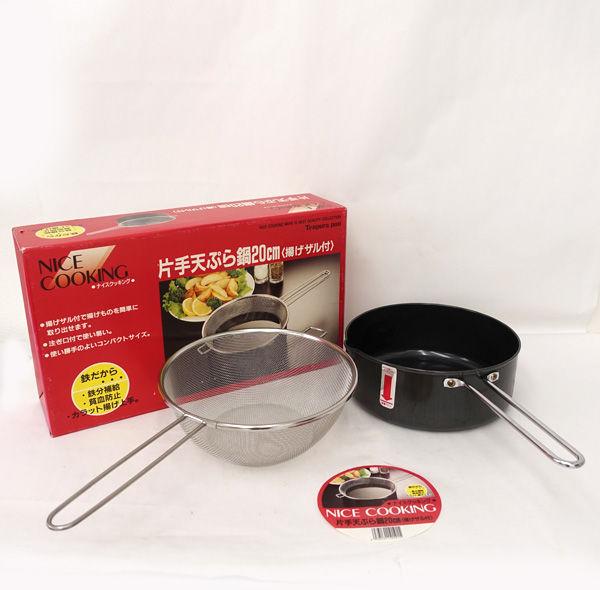 ニラサワ製販株式会社 ◆【キッチン】NICE COOKING 鉄製 片手天ぷら鍋20cm 揚げザル付 生活雑貨【未使用】