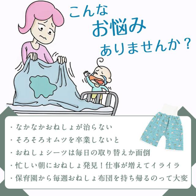 2点で400円OFF!おねしょズボン おねしょパンツ トイレトレーニング 腹巻き おねしょ対策 おねしょケット ズボンタイプ 天然綿100% 防水