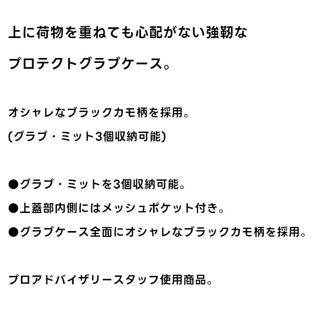 ●グラブケース全面にオシャレなブラックカモ柄を採用。
