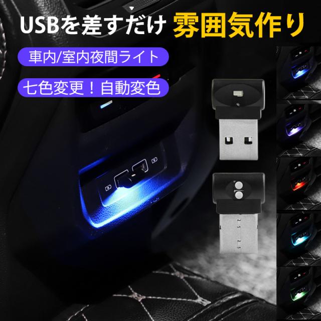 車内 USBライト 車内ライト LEDライト 車内灯 車内照明 切替 7色調色 自動変色モード 工事不要 ルームライト 室内灯 小