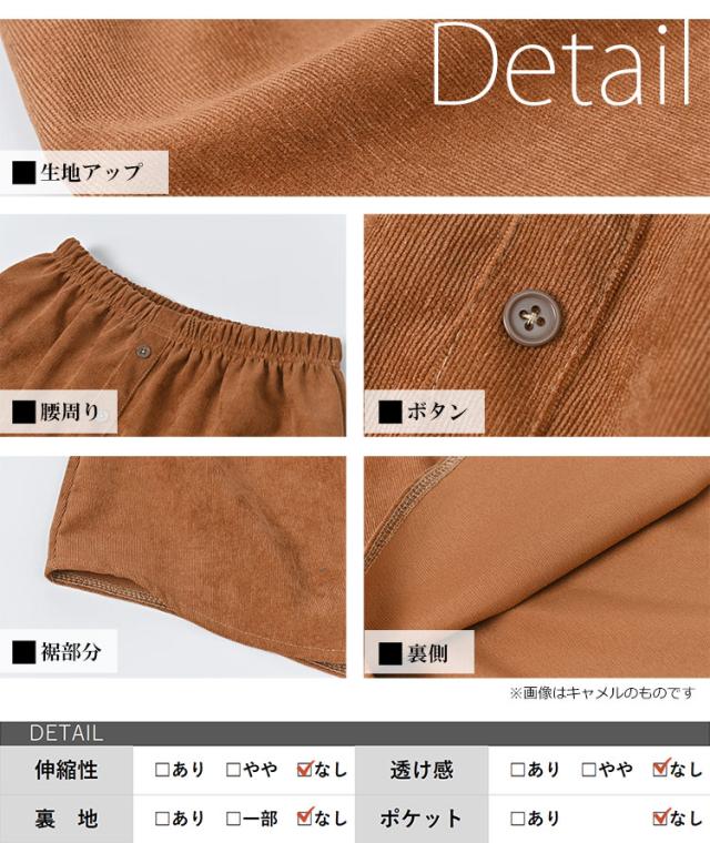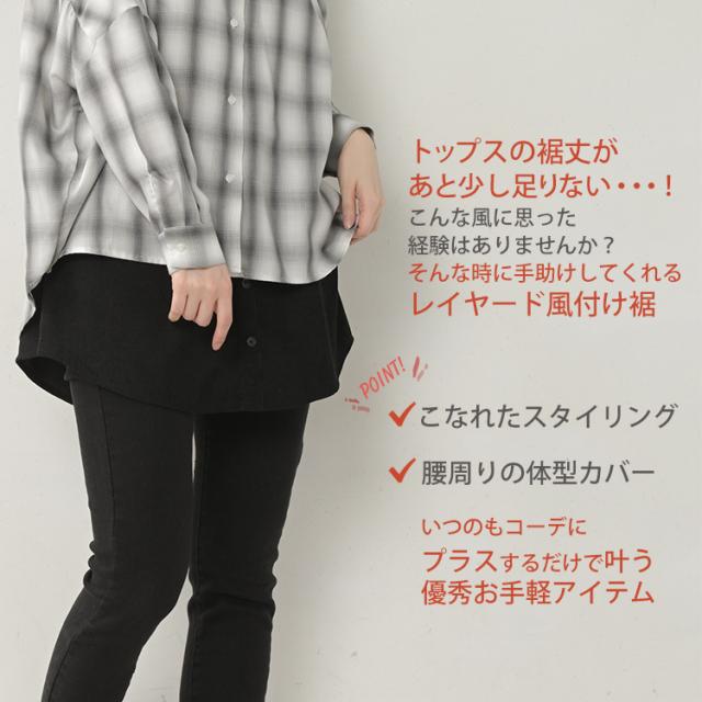 体型カバーとオシャレが叶う コーデュロイ生地の付け裾。 いつものコーデにプラスするだけで レイヤードしたようなスタイルに仕上がる 優秀なプラスワンアイテムです。 |