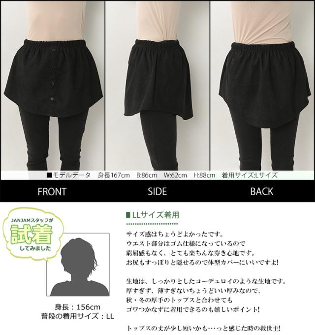 大きいサイズ レディース 付け裾 コーデュロイ生地 メール便送料無料 レイヤード ウエストゴム プラスワン雑貨 ヒップカバー L/LL/3L/4L/5L/6L ゆったりサイズ ぽっちゃり女子 プラスサイズ