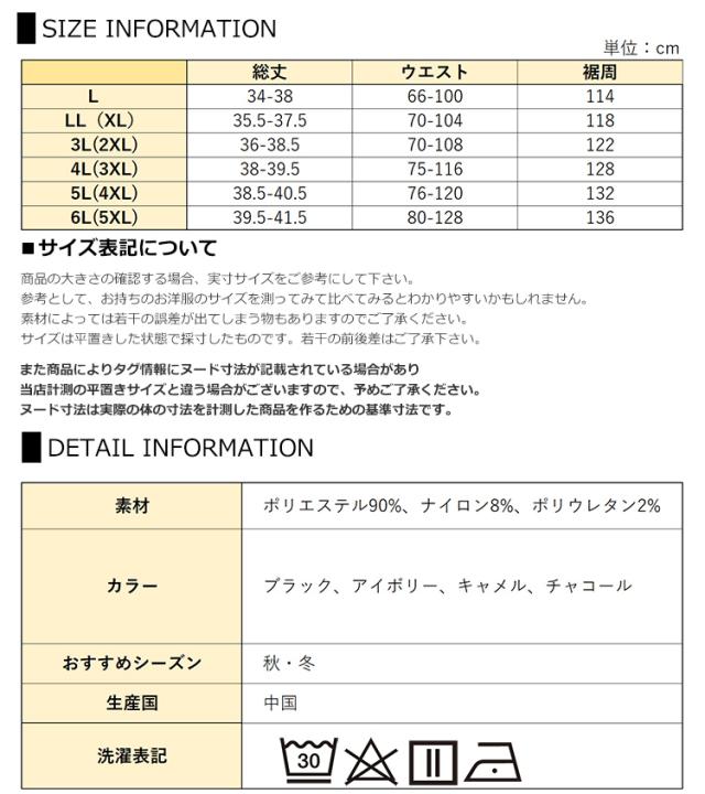 5L(4XL):総丈38.5-40.5 ウエスト76-120 裾周132