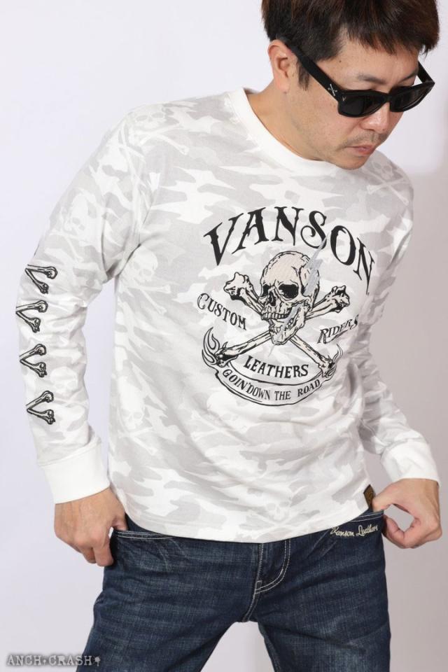 VANSON バンソン スカルボーン ロンT(NVLT-2402)長袖Tシャツ リフレクター 刺繍