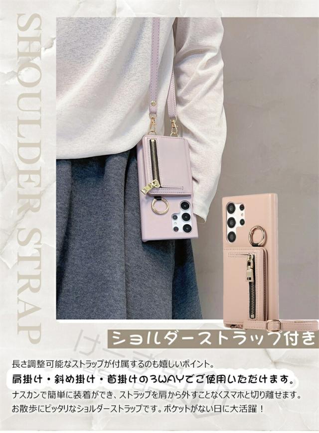 小銭入れ付きスマホケース Galaxy A55 ケース ファスナー付き ギャラクシー Galaxy A54 A53 A52 S24 S23 Ultra 5G スマホケースショルダー 肩掛け GalaxyS23 FE GalaxyS22 ギャラクシーA53 ギャラクシーS25 背面手帳型ケース ショルダー タイプ 小銭入れ 財布型