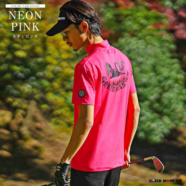 ゴルフウェア メンズ Tシャツ ブランド ネオンカラー 半袖Tシャツ メンズ モックネック ゴルフ ウェア モックネックシャツ メンズ 大きいサイズ トップス メンズ ゴルフ服 イエロー ピンク 春 秋 GREED MONSTER グリードモンスター