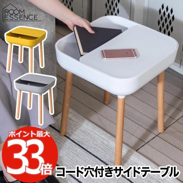 テーブル サイドテーブル ソファ テーブル ミニテーブル ナイトテーブル コード穴付き 省スペース 収納台 収納付き ディスプレイ台 軽量 コンパクト 北欧 おしゃれ シンプル モダン スタイリッシュ 木脚 樹脂製 リビング 収納家具 子供部屋 玄関