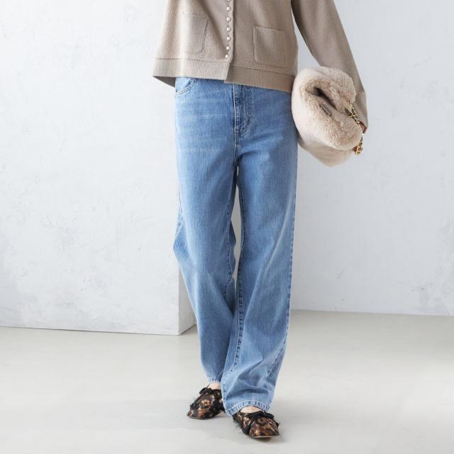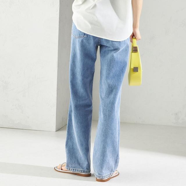 女性らしい程よい落ち感と、穿き心地のよい生地を使用した新型のストレートデニム。