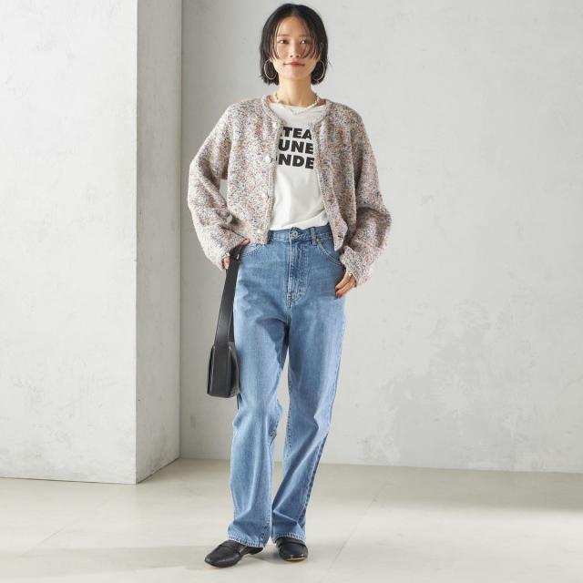 立体感ある加工にこだわりつつ、きれいめなスタイルでもコーディネートしやすいようダメージ加工は控え、クリーンな印象に仕上げています。