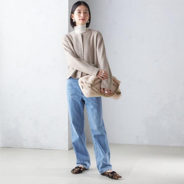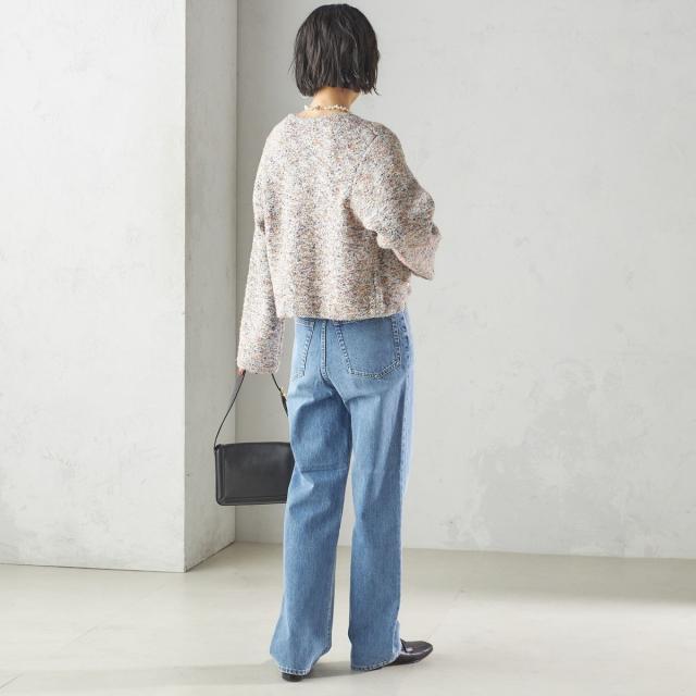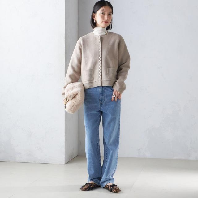 短丈のトップスやアウターで今年らしいシルエットの着こなしにしていただくのもおすすめです。