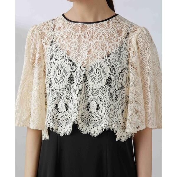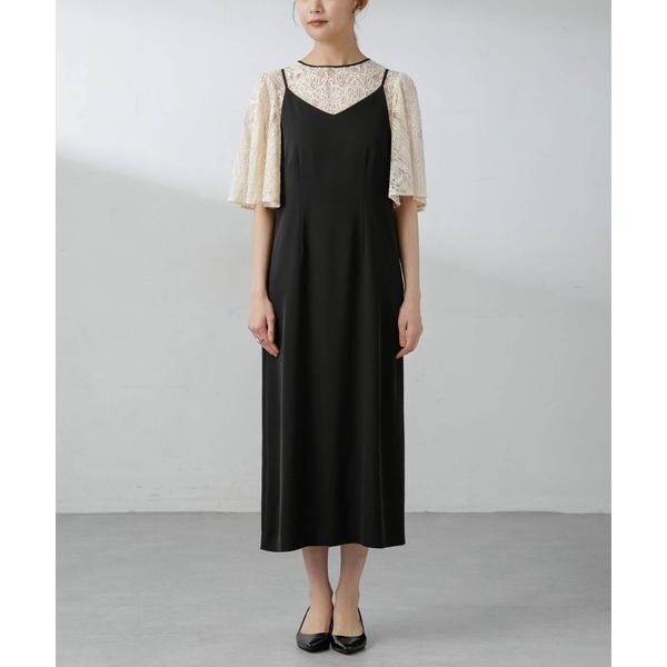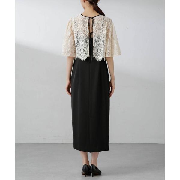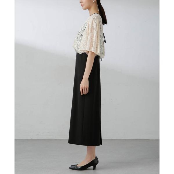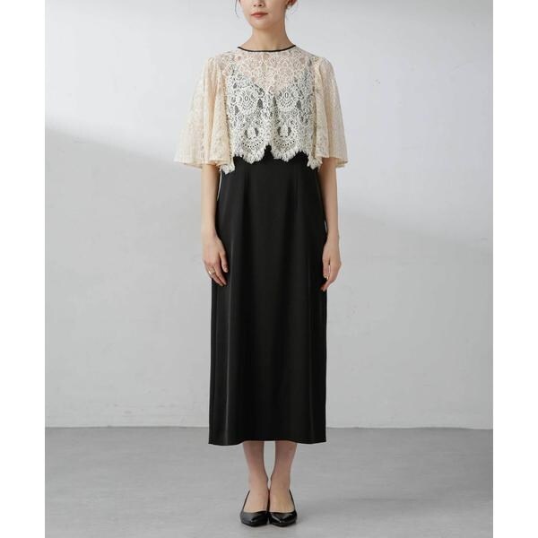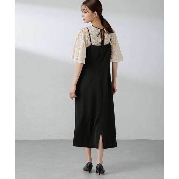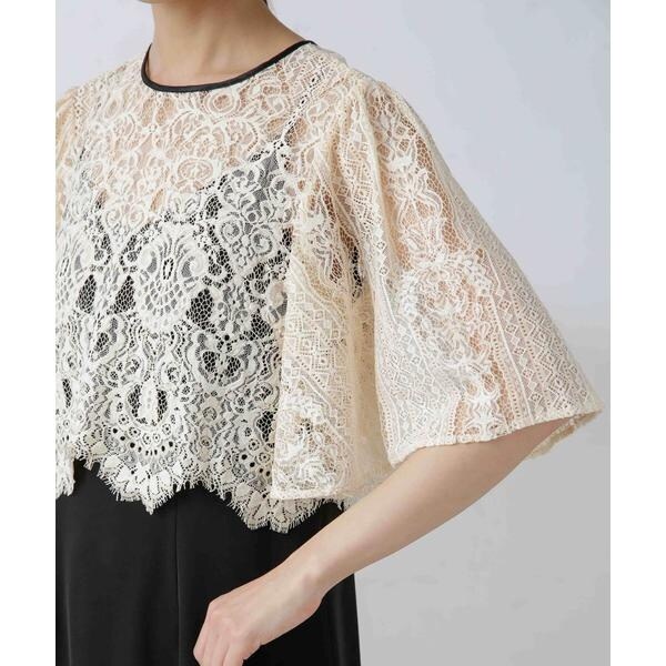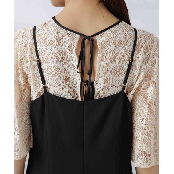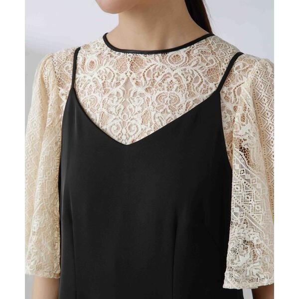 ・繊細な総レースが華やかなブラウスとミニマルなキャミワンピースを組み合わせたセットドレス