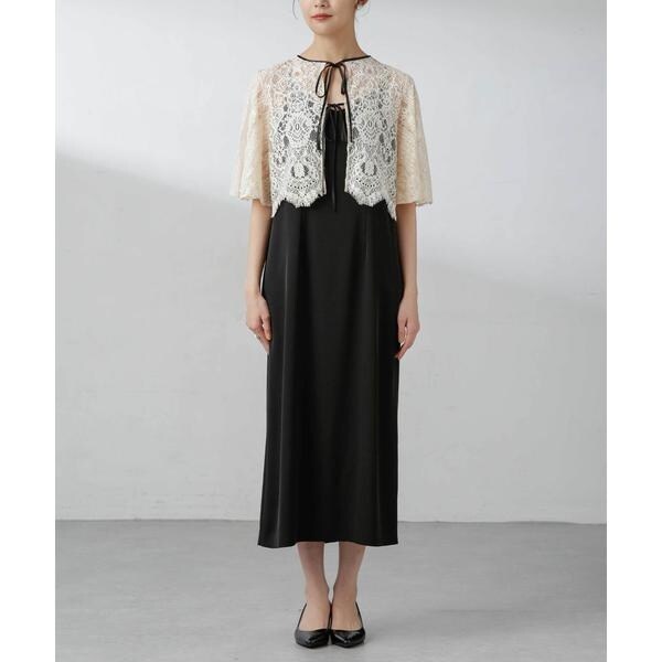 繊細な総レースが華やかなブラウスとミニマルなキャミワンピースを組み合わせたセットドレス。ブラウスは今季トレンドのショート丈。ワンピースは汎用性の高いシンプルかつすっきりとしたデザインで、小物やアクセサリーでアレンジを楽しめるのも嬉しいポイント。結婚式などのお呼ばれにはもちろん、様々なシーンで華やぎを演出してくれるアイテムです!