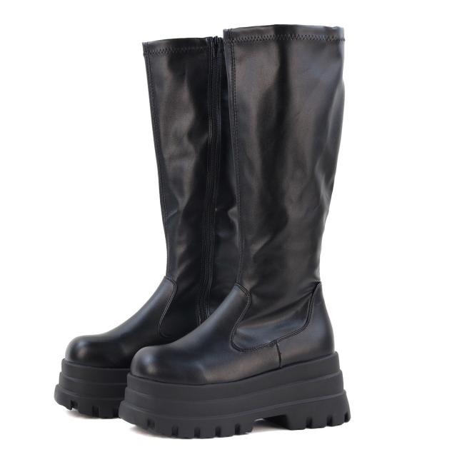 ボーリューム感のあるつま先とスクエアソールが特徴のストレッチロングブーツ!!