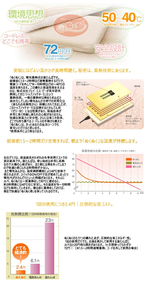 ジェイ・エス・ピー 蓄熱式コードレス電気あんか ぬくぬく 冷え対策 エコ湯たんぽ 省エネ