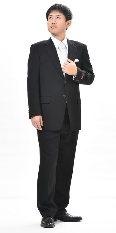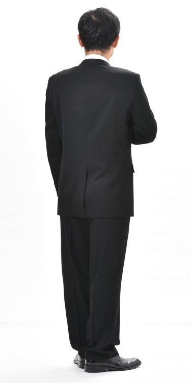 このフォーマルシングルブラックスーツは生地もしっかりしており、合冬物としては最適です。 ジャケット+パンツ ※装飾品などの小物類は商品に付いておりません。 ![]() ブラック ジャケット シングル2釦1掛け ・ノッチドラペル・お台場仕立て・毛芯仕立て ・メガネ携帯電話ポケット・祝儀袋ポケット パンツ |