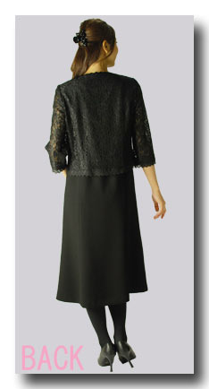 | ・シンプルで飽きのこないノーカラーのジャケットに、レースを施して豪華な印象に仕上げました。 ・ワンピースはウエスト部分で切り替えてスーツ風になっているので、 あ1枚で着ても体のラインが出にくいデザインです。 ・前開きで着脱がしやすく、背中ファスナーの煩わしさから開放されます♪。 ・慶弔セレモニーにお召しいただけるセットです。 |