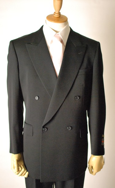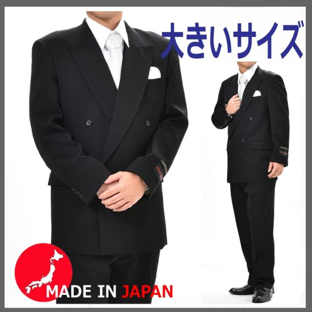 日本製 合服ダブル4B×1 ブラックスーツ ワンタック 黒のダブル略礼服喪服 アジャスター付パンツ裾未処理