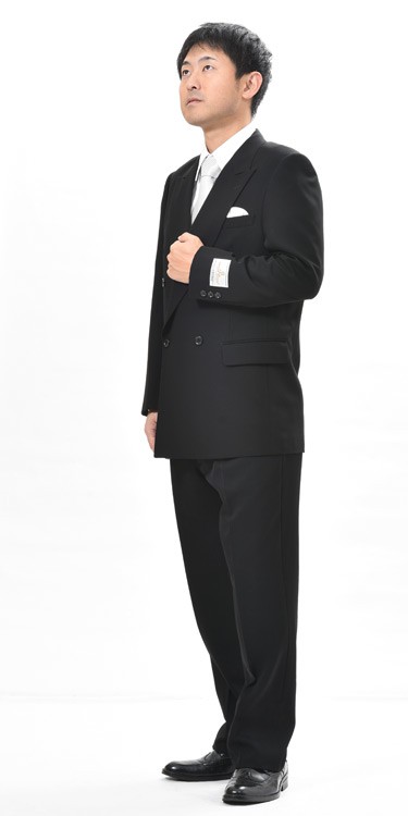 夏用SUPERTEX(長大毛織)ダブルブラックスーツRM6640 サマーウール使用 パンツ裾未処理