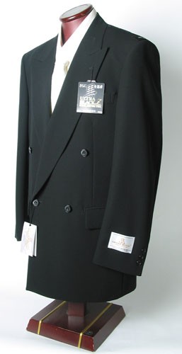 日本製夏服ダブル4B×1 ブラックスーツ 黒の略礼服 喪服 アジャスター付パンツ裾未処理。