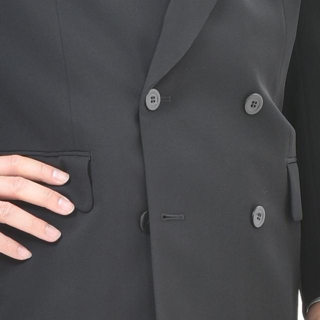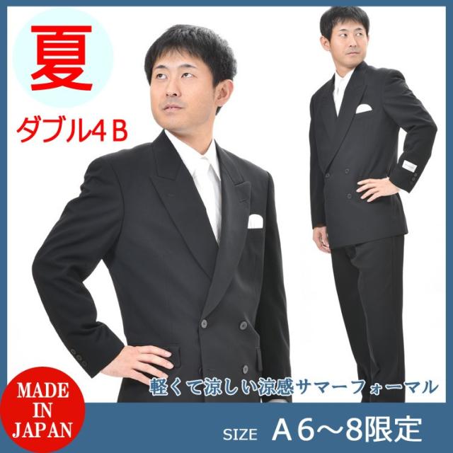 サイズA8 夏用ブラックスーツ ダブル略礼服夏用喪服4×2 サマーウール使用 アジャスターつきRM16802サイズ パンツ裾未処理