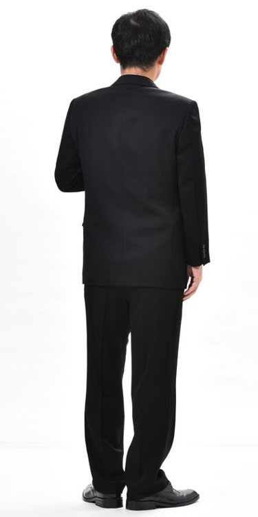 国内工場の仕立てのよさ(東洋紡マナード) このサマーフォーマルブラックスーツは生地も厳選された最高級東洋紡マナード糸を使用して、夏服としては最高級仕立てです。 ダブル4釦1掛け ノーベンツ ワンタック |