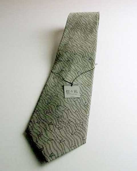 法事用絹100%のロイヤルクレスト柄グレーネクタイAT006