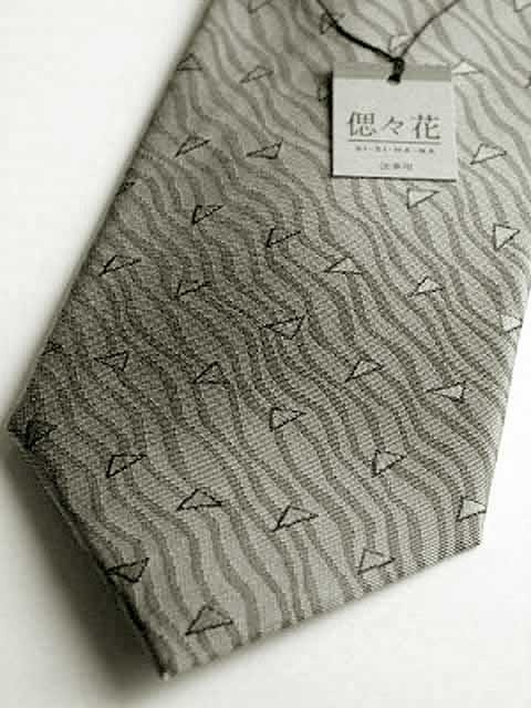 大剣幅8.5cm、長さ普通丈 約142cm 撥水加工日本製のグレーシルクネクタイ