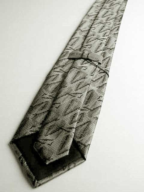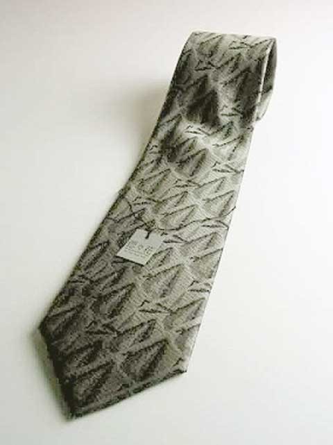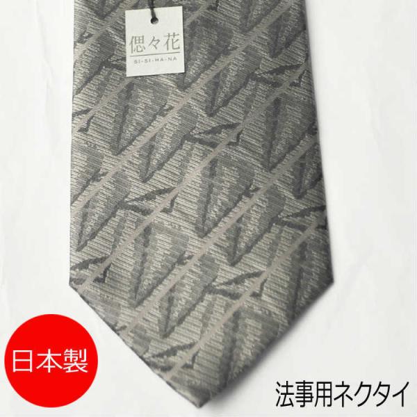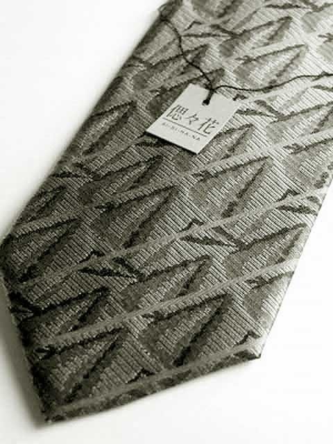 法事用絹100%の変形幾何学柄グレーネクタイAT009