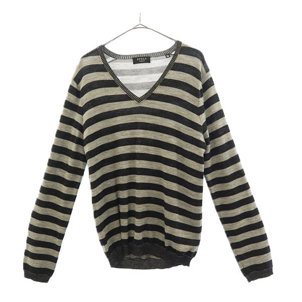 エポカウォモ ボーダー 長袖 ウール Vネック セーター ITL 46 EPOCA UOMO ニット 三陽商会 メンズ