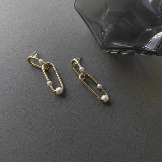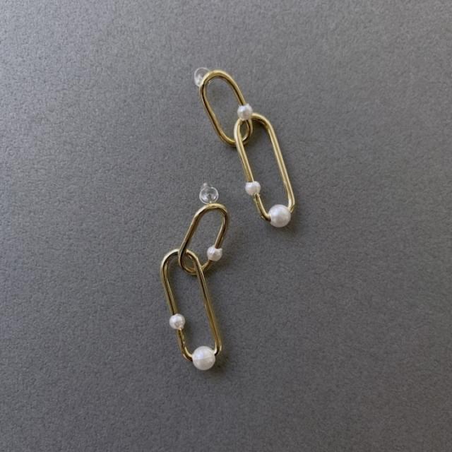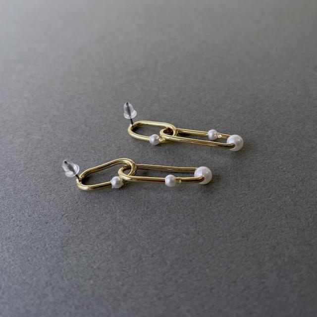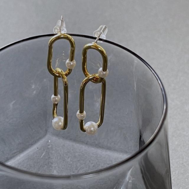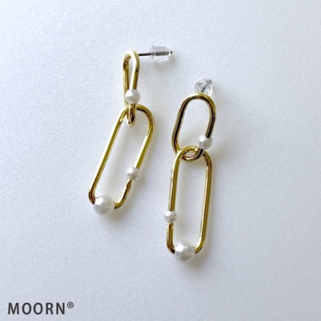 ピアス 揺れる レディース メタル パール ピアス 揺れる 両耳 チェーン 鎖 シンプル ゴールド ピアス イヤリング レディース アクセサリー おしゃれ 結婚式 パーティー お呼ばれ 入園式 卒園式 入学式 卒業式 デイリー 韓国 MOORN/モーン MRN-ER23101