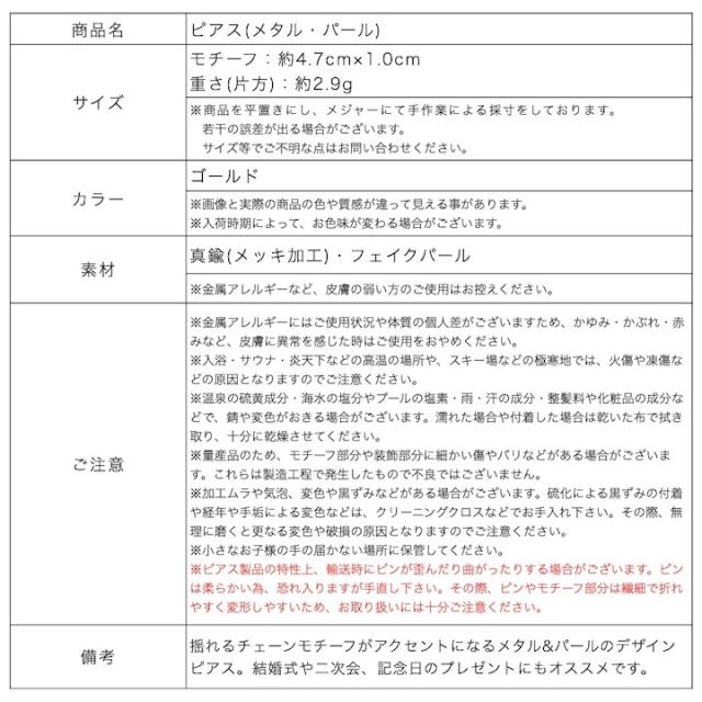 【商品名】ピアス(メタル・パール)