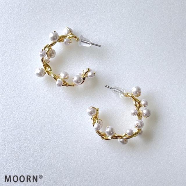 ピアス フープ パール ピアス 両耳 フープピアス シンプル ゴールド ピアス イヤリング レディース アクセサリー おしゃれ 結婚式 パーティー お呼ばれ 入園式 卒園式 入学式 卒業式 デイリー 韓国【MOORN/モーン】MRN-ER23103