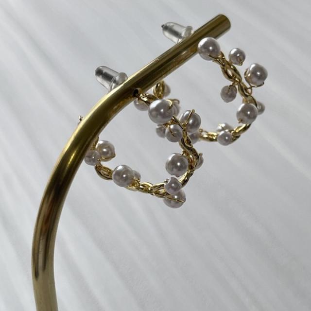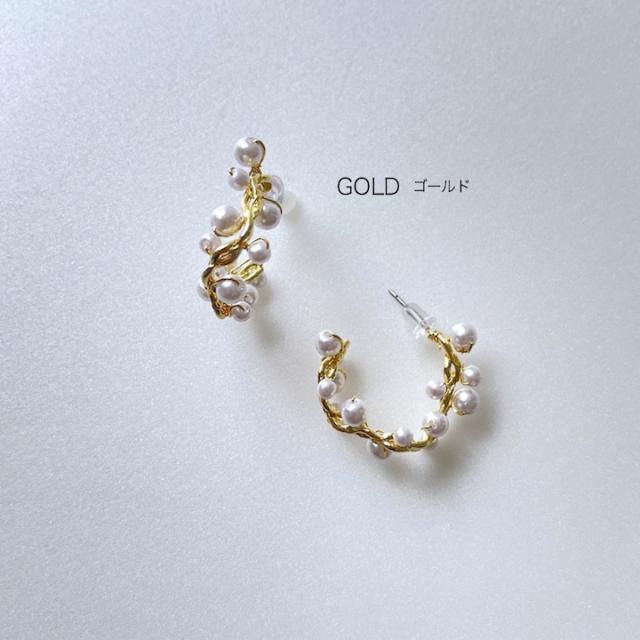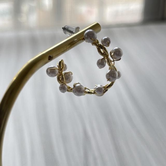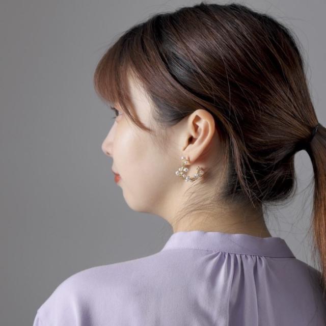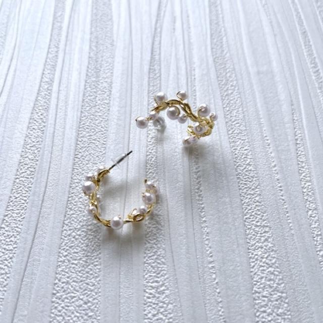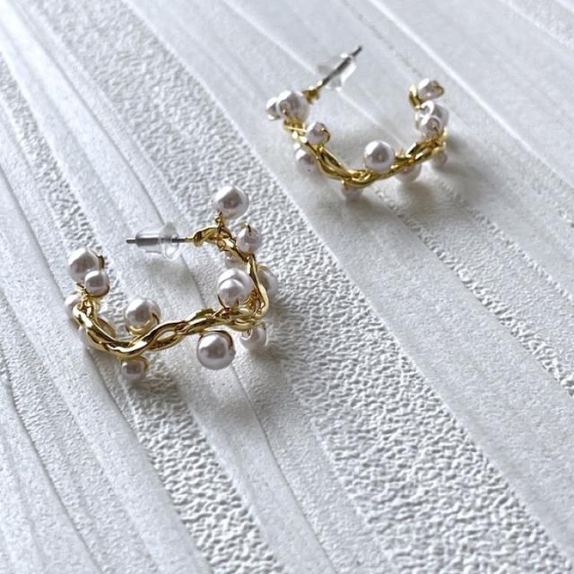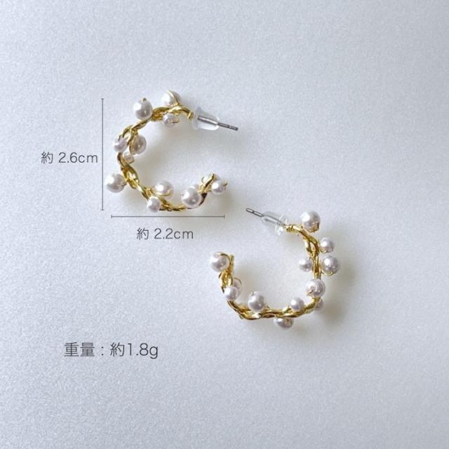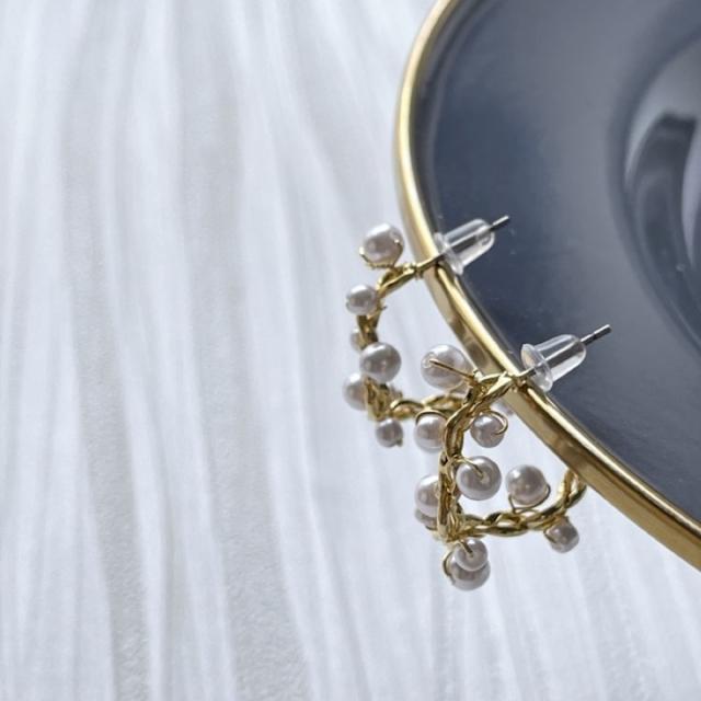パールがアクセントになるフープデザインのピアス。結婚式や二次会、記念日のプレゼントにもオススメです。