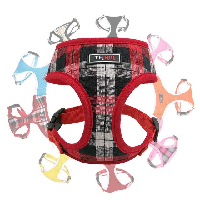 THAIN 犬 ハーネス 超小型犬 猫用 ハーネス チェック 子犬 犬用ハーネス ベストハーネス 犬 抜けない 胴輪 おしゃれ 小型犬の子犬 ドッグ