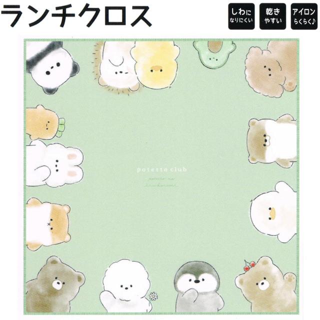 メール便 OK ランチクロス ナフキン 女の子 向け 正方形 ポテットクラブ クマ 犬 ハリネズミ クラックス おしゃれ で かわいい 文房具