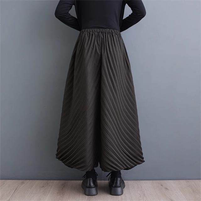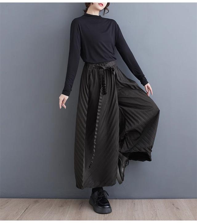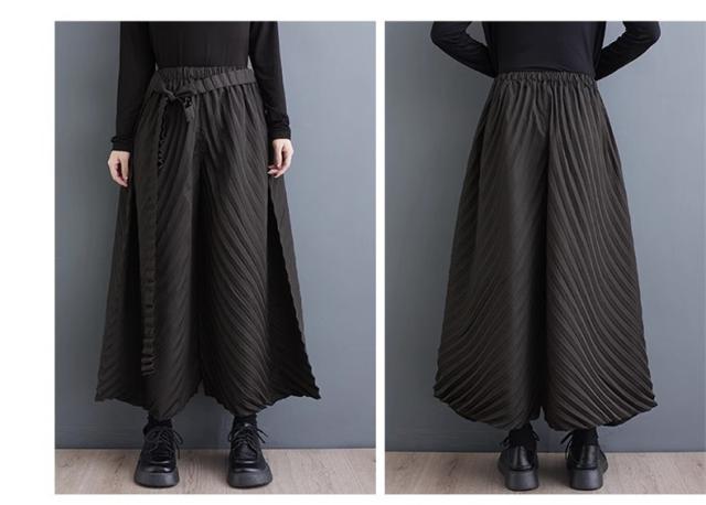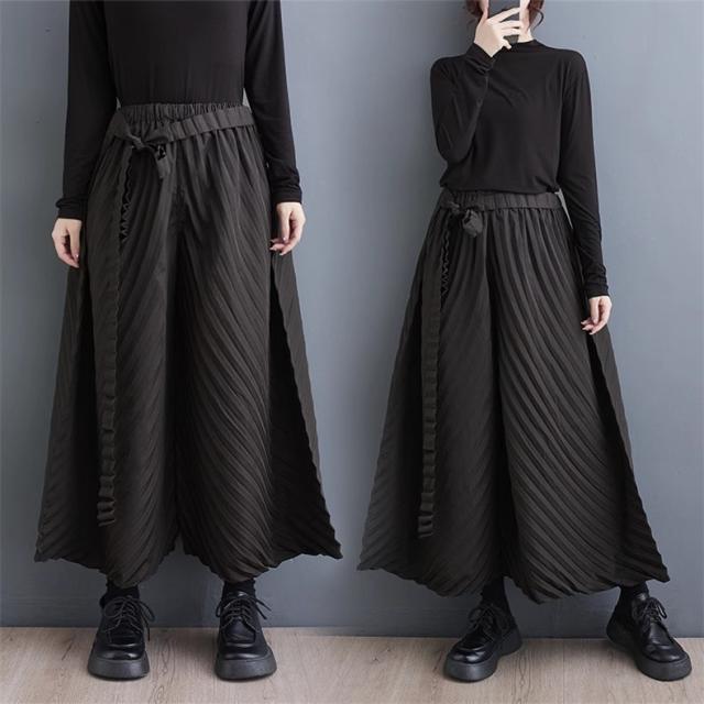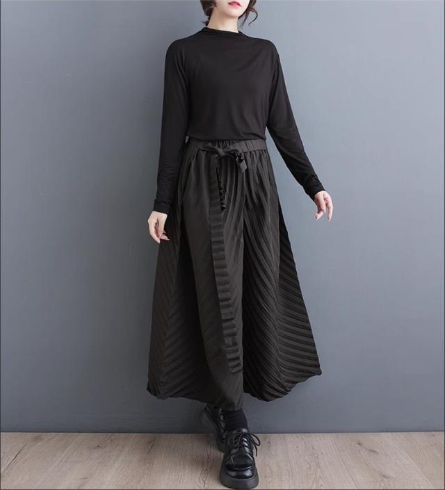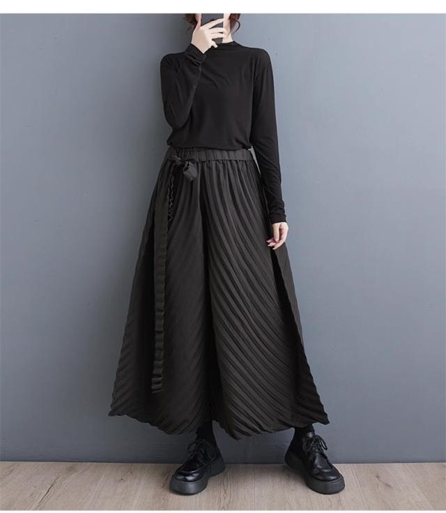 ワイドパンツ レディース 冬服 ボトムス パンツ 大きいサイズ ゆったりシルエット プリーツ ワイドパンツ ラクなはき心地 スタイルアップ効果ばっちり