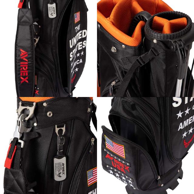 アヴィレックス ゴルフ 8.5型 USA キャディバッグ AVG3F-BA6 セルフスタンド付き スタンドタイプ ネームプレート刻印無料! 2023年秋冬モデル AVIREX GOLF