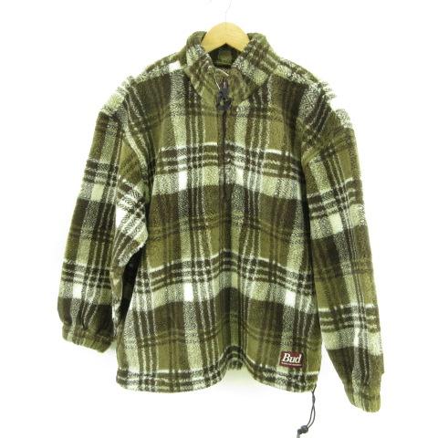 【中古】未使用品 バドワイザー Budweiser ボアトレーナー ハーフジップ チェック 茶 LL *T661 レディース