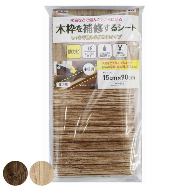 補修シート 木枠補修シート 木目 15cm×90cm ( 木枠 保護 シート 壁 家具 角 はがせる 傷防止 防カビ 防汚 抗菌 防水 結露対策 キズ保護 キズ防止 汚れ防止 窓 小窓 扉 ドア 貼ってはがせる フリーカット )