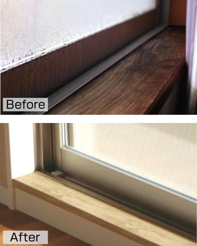 傷んだ窓枠の補修だけでなく、階段の手すりや巾木のリメイクにもおすすめです。設置場所に合わせてハサミで自由にカットできます。