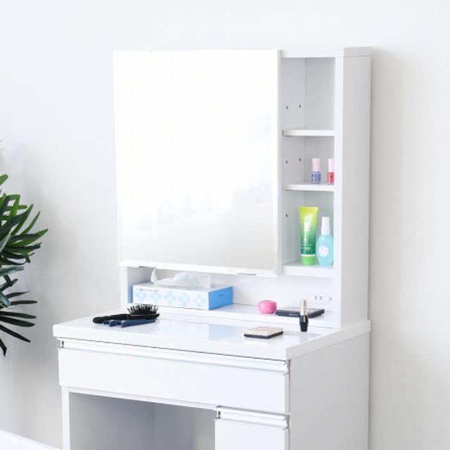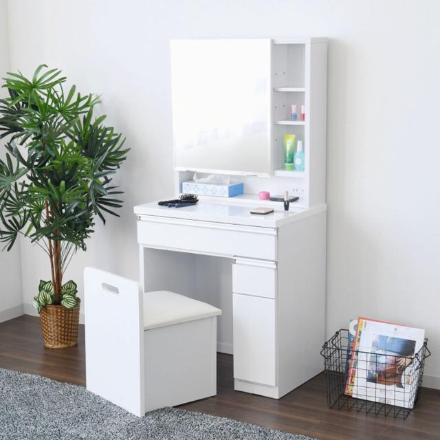 幅65cmとコンパクトながらも収納がたくさんできる大容量のドレッサーです。毎日使うものだから、より使いやすくデザイン性も機能性にもこだわりました。天板は高光沢に仕上げツルツルした表面で美しく、お手入れも簡単です。メイク用品で汚れてしまってもサッと拭きとることができます。見た目はシンプルですが、可愛いカラーもあるので子ども用にもピッタリです。