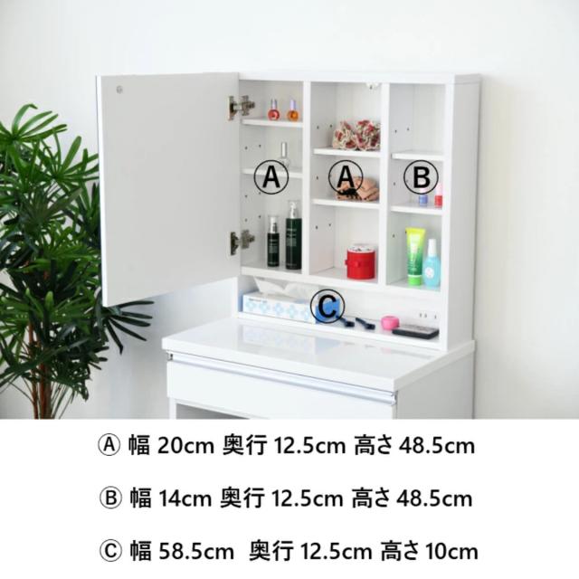 ●幅65cmとコンパクトながらもコスメやスキンケア類などたくさんの収納が可能です。
